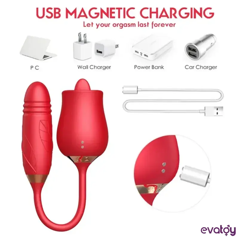 هزاز مغناطيسي قابل لإعادة الشحن، بحركة ذهابًا وإيابًا وحركة لسان، على شكل وردة، قابل للتمديد