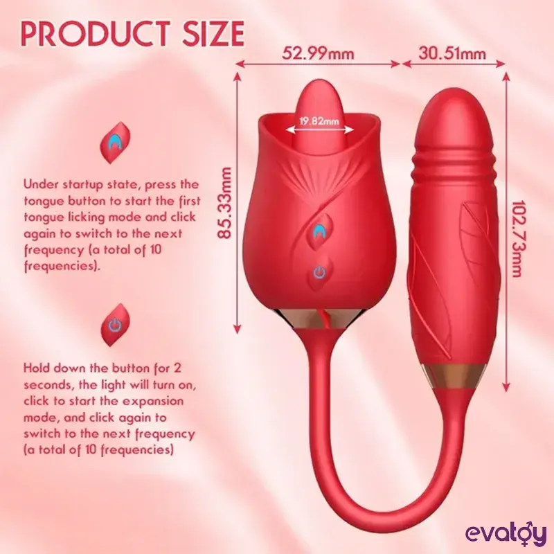 ترتكز الوردة ذات الطرفين على قاعدة لسان مرنة بدلاً من الشفط. بضغطة واحدة فقط، تُحفز حركة اللسان المرنة، الناتجة عن اهتزاز ميكانيكي داخلي، جسدكِ وروحكِ. تُوفر ارتعاشًا مُستمرًا ونشوة مُبهجة.